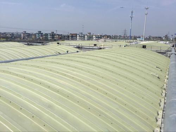 3、輕質(zhì)高強、安裝方便:玻璃鋼集氣罩比重僅為鋼制品的1/3至1/4,固化程度高,載荷負重大,強度高,適用于大跨度池體,同時蓋板可分為若干小塊,便于運輸、安裝。